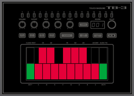 La Roland TB-3 sortie en 2014 révolutionne la mythique TB 303 de ses sons Acid avec cette fois-ci un Pad Tactile !